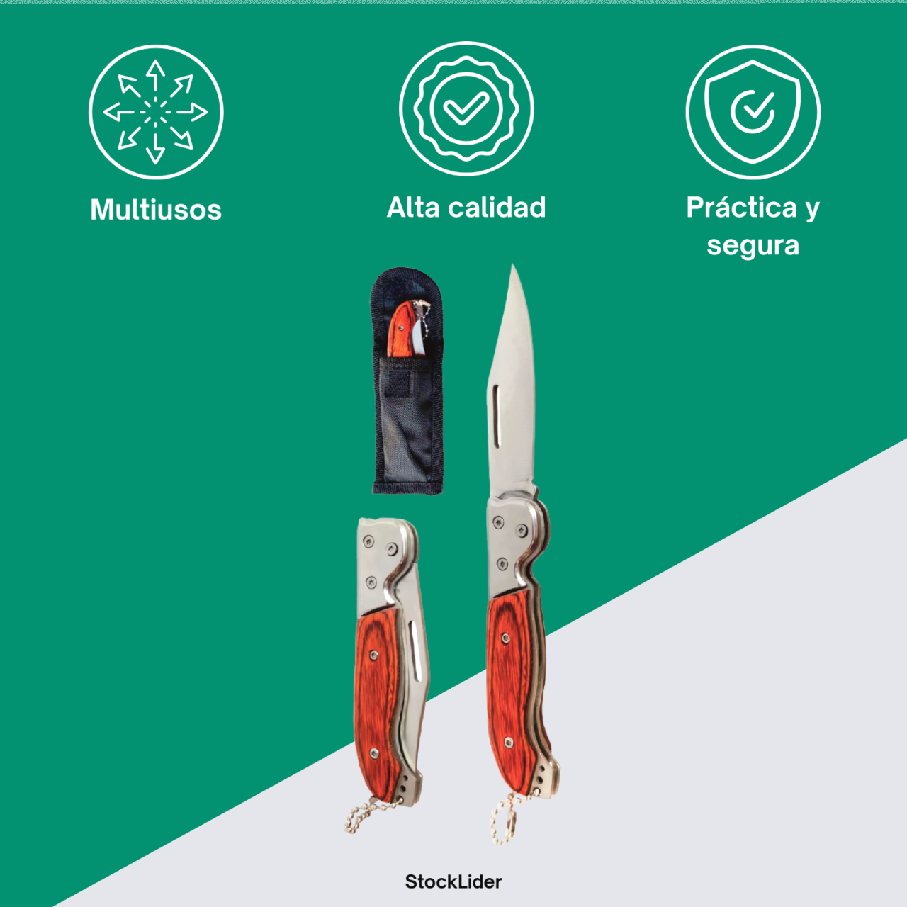 La Navaja con funda StockLíder es la compañera ideal para tus aventuras al aire libre y para el día a día. Diseñada con un estilo práctico y seguro, combina funcionalidad, resistencia y un elegante mango ergonómico que se adapta perfectamente a la mano.